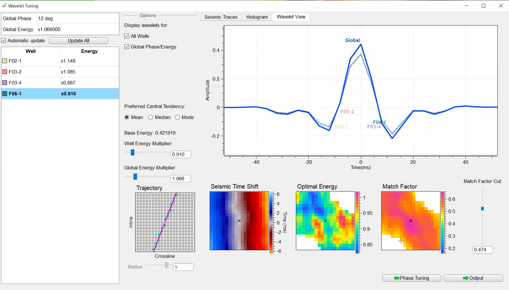 This module offers an intuitive, interactive interface designed to help you accurately define wavelet phase and energy by leveraging statistical analysis across multiple seismic traces and wells simultaneously.